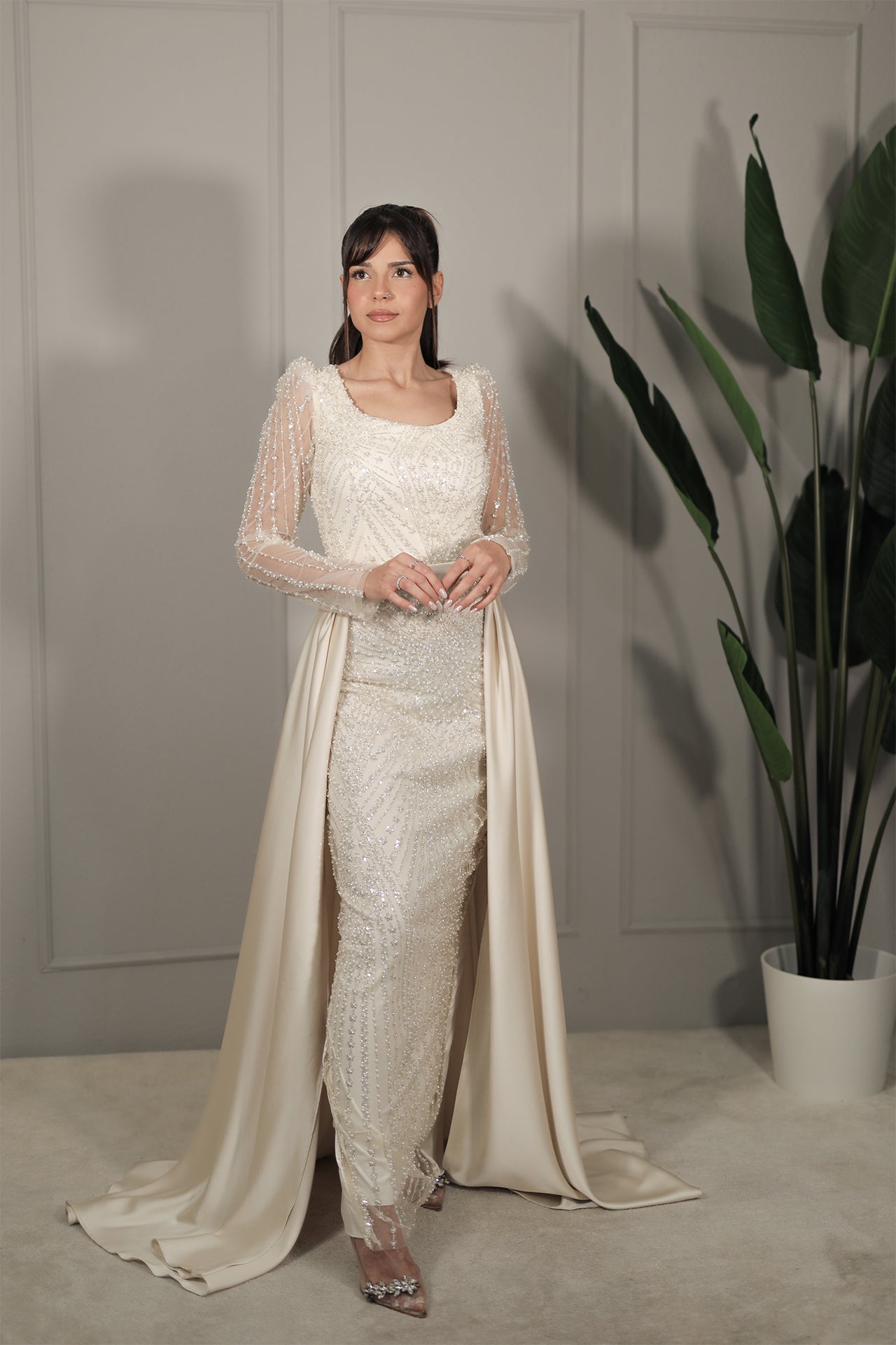 Regulärer Preis €229,90Verkaufspreis €229,90 Regulärer PreisEinzelpreis / proPerlen‑Welle Mermaid‑Kleid Asymmetrische, schulterfreie Designs sind weiterhin gefragt – sie zeigen dezent Haut und verleihen zugleich eine moderne Eleganz. Glitzernde Details wie Perlen, Pailletten oder funkelnde Verzierungen...