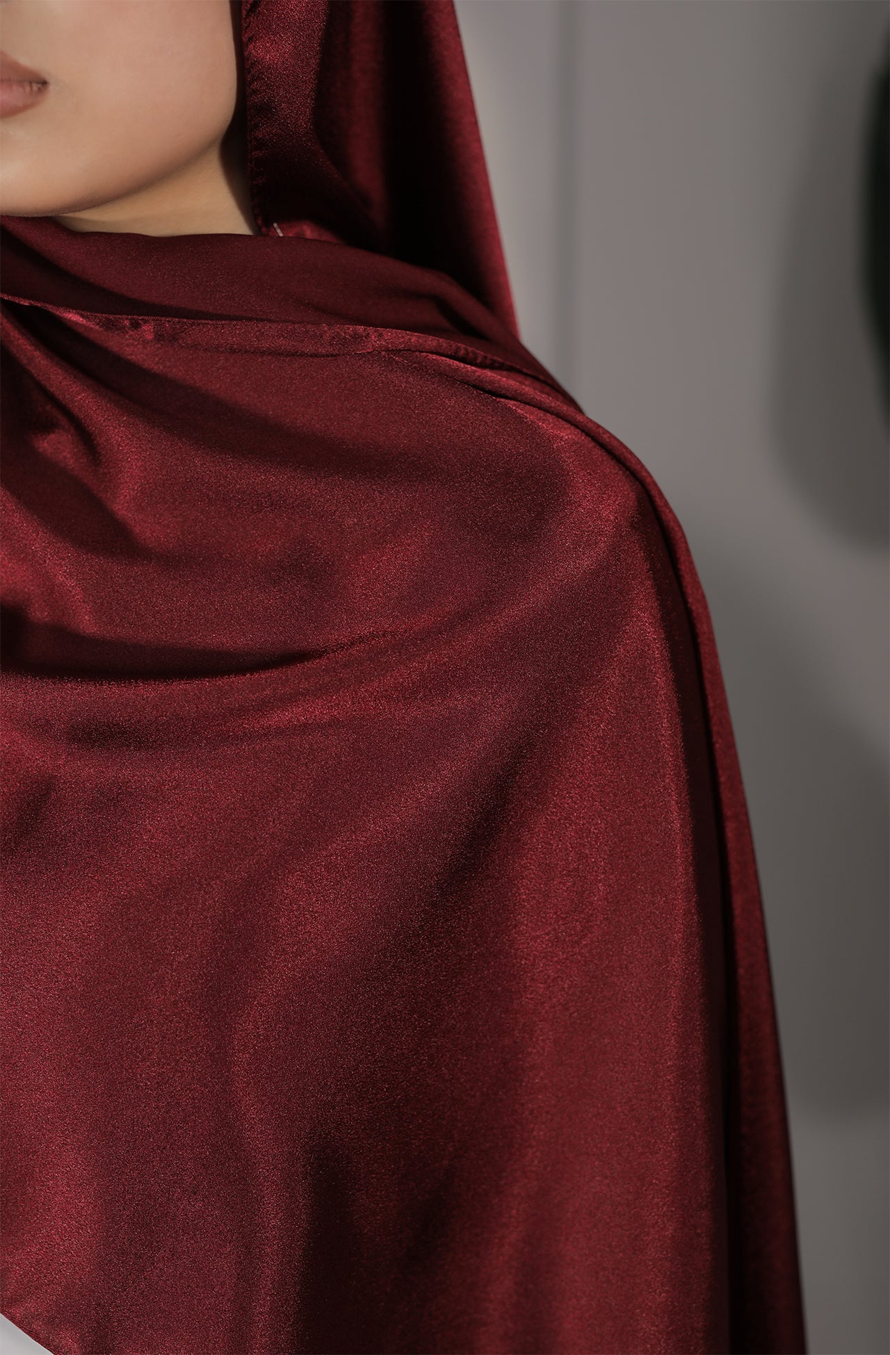 Die Außenseite besitzt einen zart glänzenden Satin-Effekt, während die Innenseite matt strukturiert ist – dadurch liegt der Schal angenehm auf dem Haar und rutscht deutlich weniger als herkömmliche Satintücher.